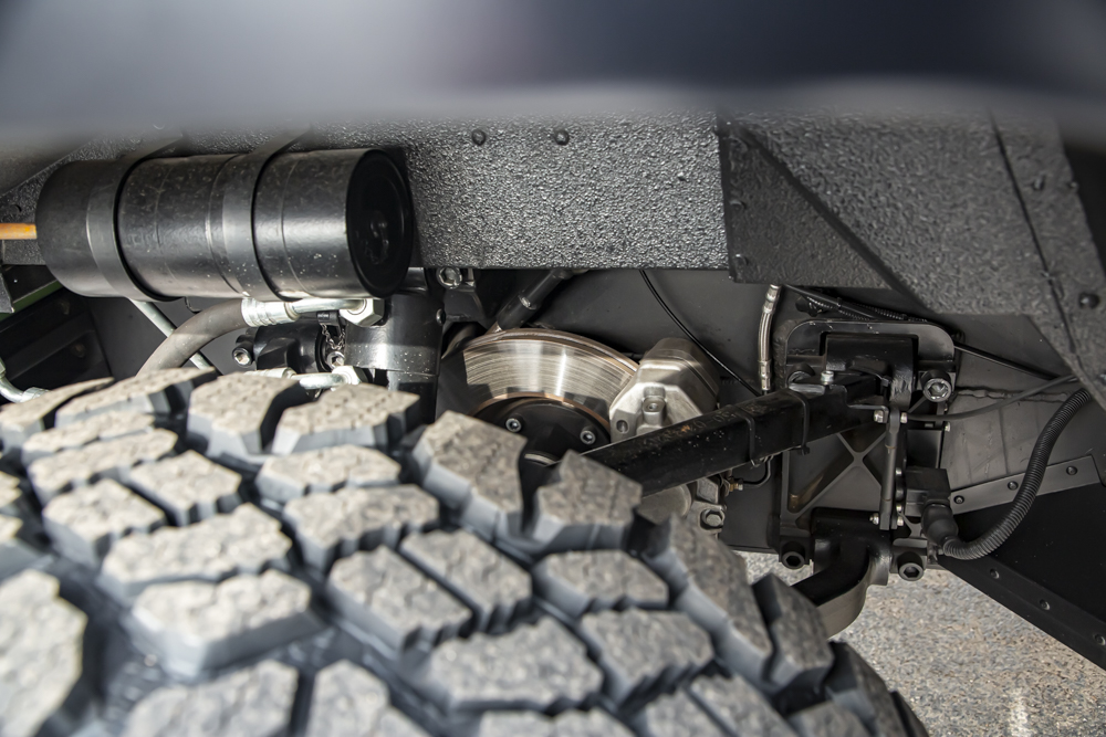 No matter which way you slice it, the silent shove of electricity is still an otherworldly experience. But this one wasn’t silent. Driveline noises were present, and we’re not calling that a bad thing. The noise comes from the two-speed transfer case and portal axles. This gives the B1 impressive ground clearance. But at the same time, you can lower the articulated suspension to get the car to hug the ground at highway speeds.