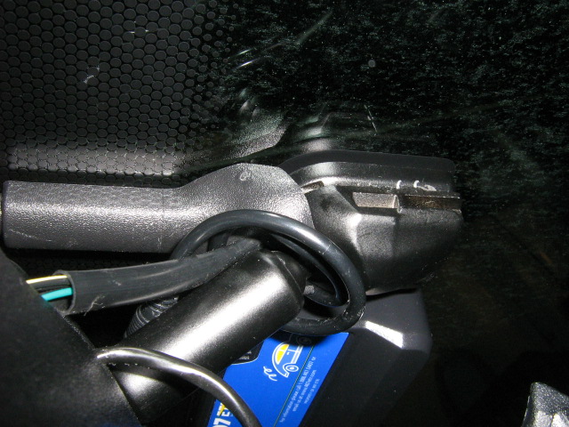 These are close-up shots of what I believe is a cam-lock of the mirror I now have. The 2 wires you also see in the photos: Wire 1 is for the "external to this mirror" compass sensor. Wire 2 is what feeds power to my GPS....