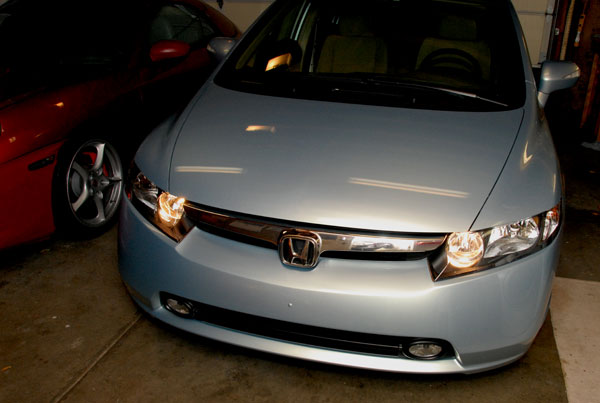 Lastly, I added the Honda fog lamps. This add-on kit is truly a complete product, and is fairly easy to install. Much of the wiring is already in place in the car, and simply needs the addition of 3 sub-harnesses, and a new multi-function light switch. The most difficult part of the installation was the cutting of holes in the front bumper cover. Why Honda did not just put punch-outs for the lamps, I don't understand, especially since most everything else is held in with plastic clips.