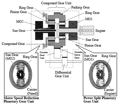 I haven't seen a sketch or diagram for the Camry transaxle. I know how our Prius transaxle work and figured the Camry was the same. But someone (not a Prius owner) thinks there is an extra planetary gear in the Camry transaxle and just don't know.
