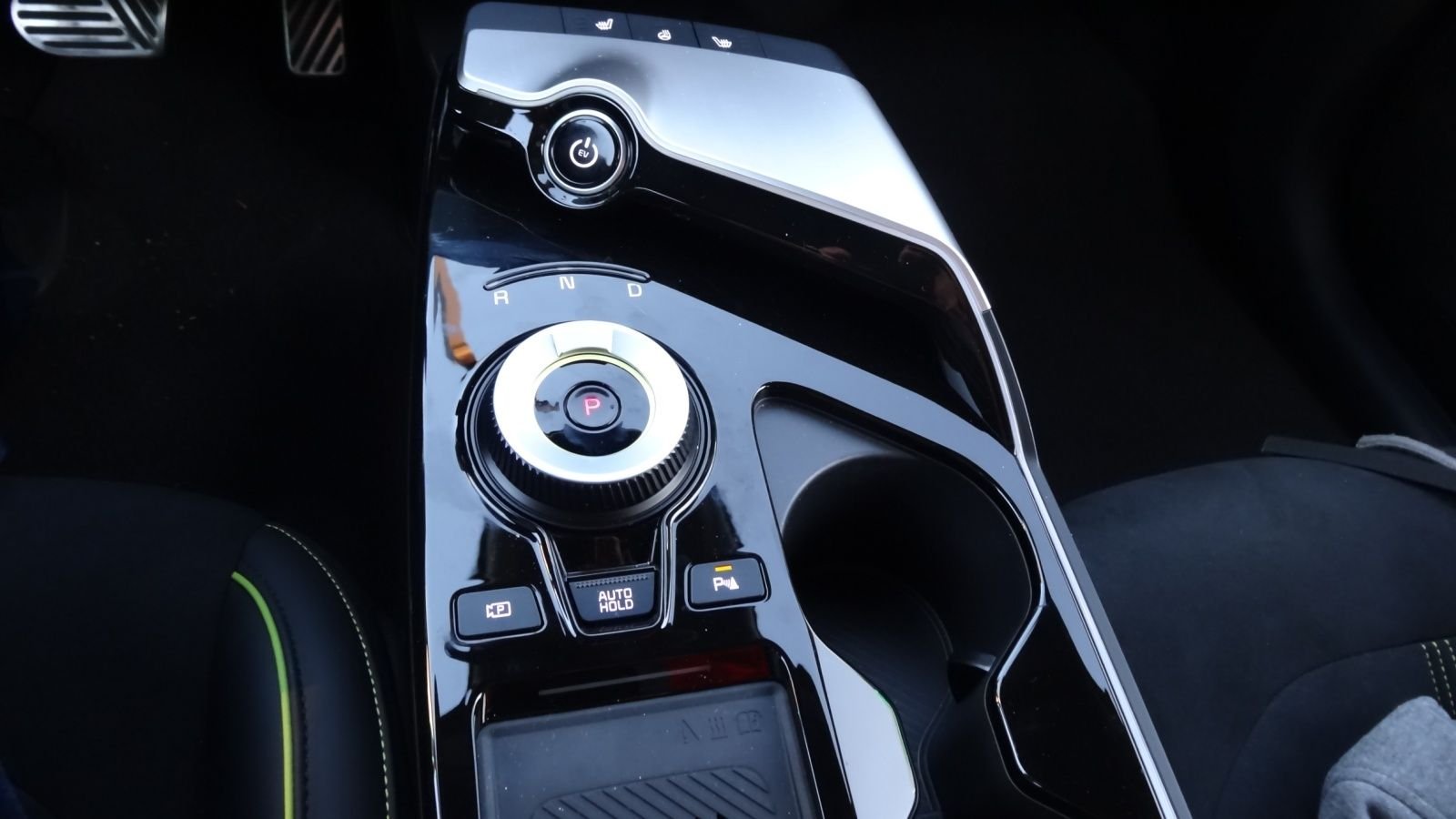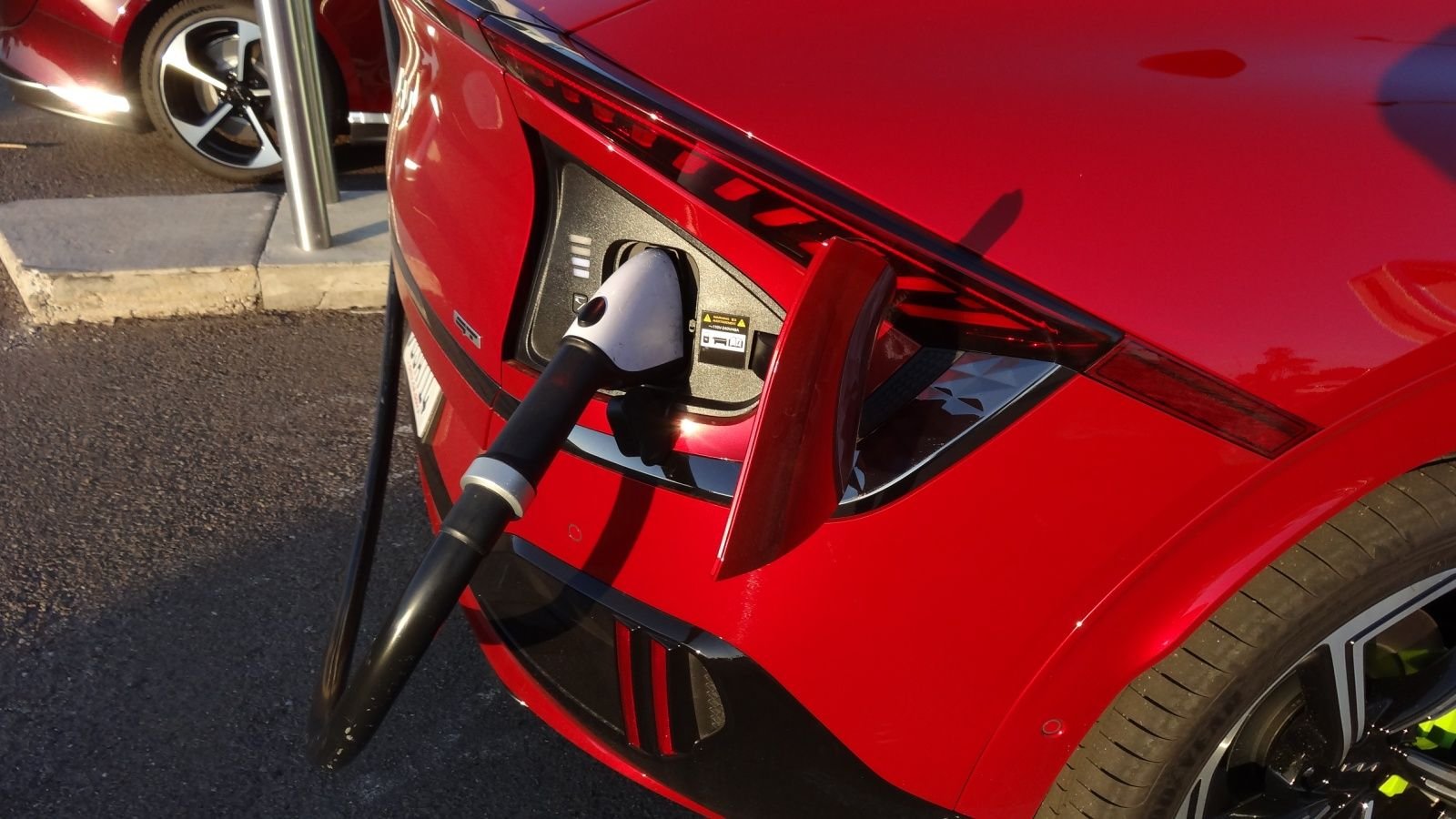 The charge port is hidden behind this panel, and you will never find it unless you already know its location. There are three power packs offered. The GT has a 225 horsepower unit and a listed range of 310 miles. The GT Line is 320 hp, with a 282-mile range. We have the top-line GT AWD. It cranks a staggering 576 horsepower but goes about 200 miles before you start walking.