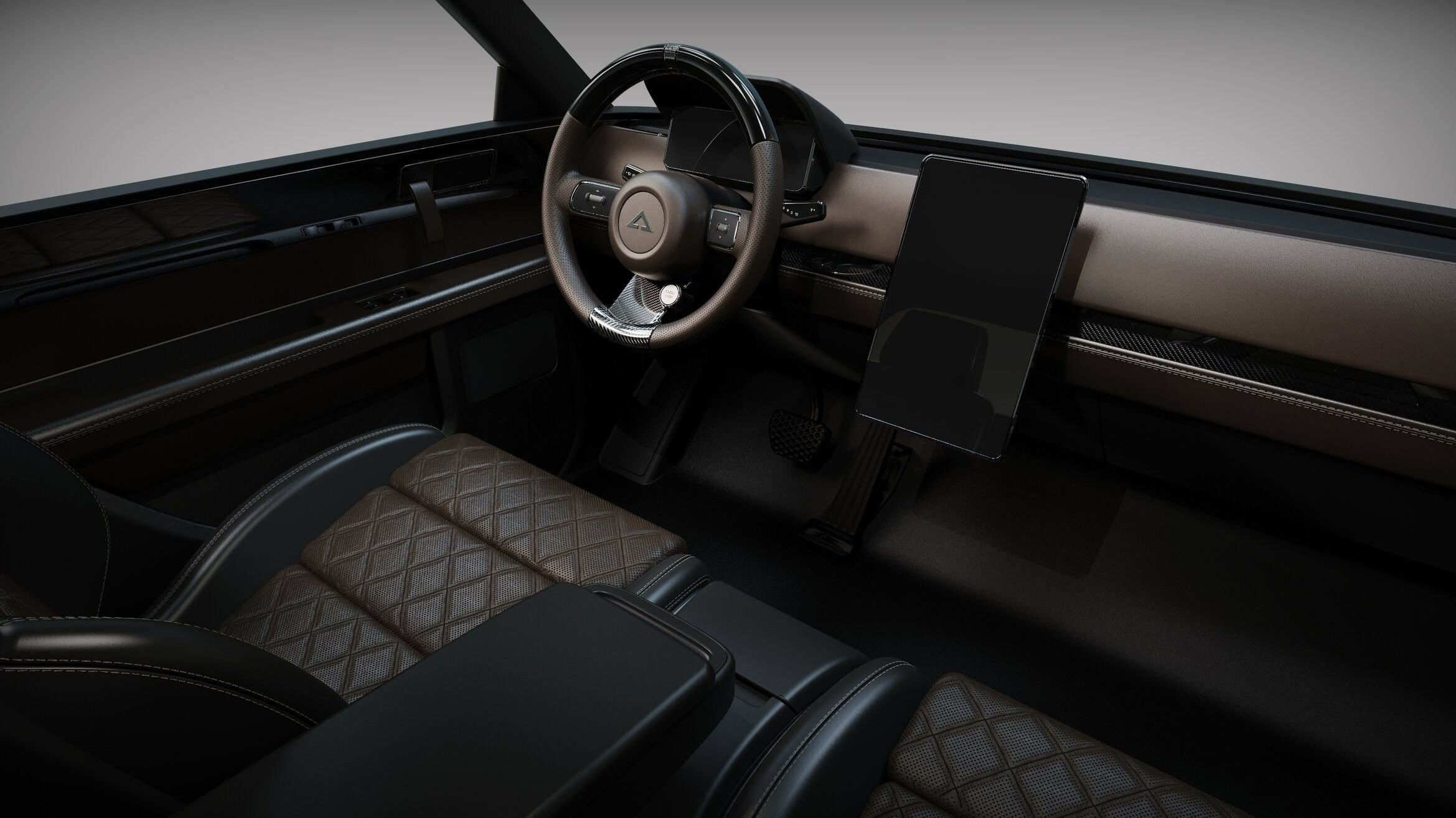 The interior of the Wolf is simple yet attractive, with seating for two and both a central infotainment screen and a driver's display. The premium-looking seats bear a diamond-stitched pattern, and the Wolf will come with a premium sound system, trim, and seating material, according to Alpha.