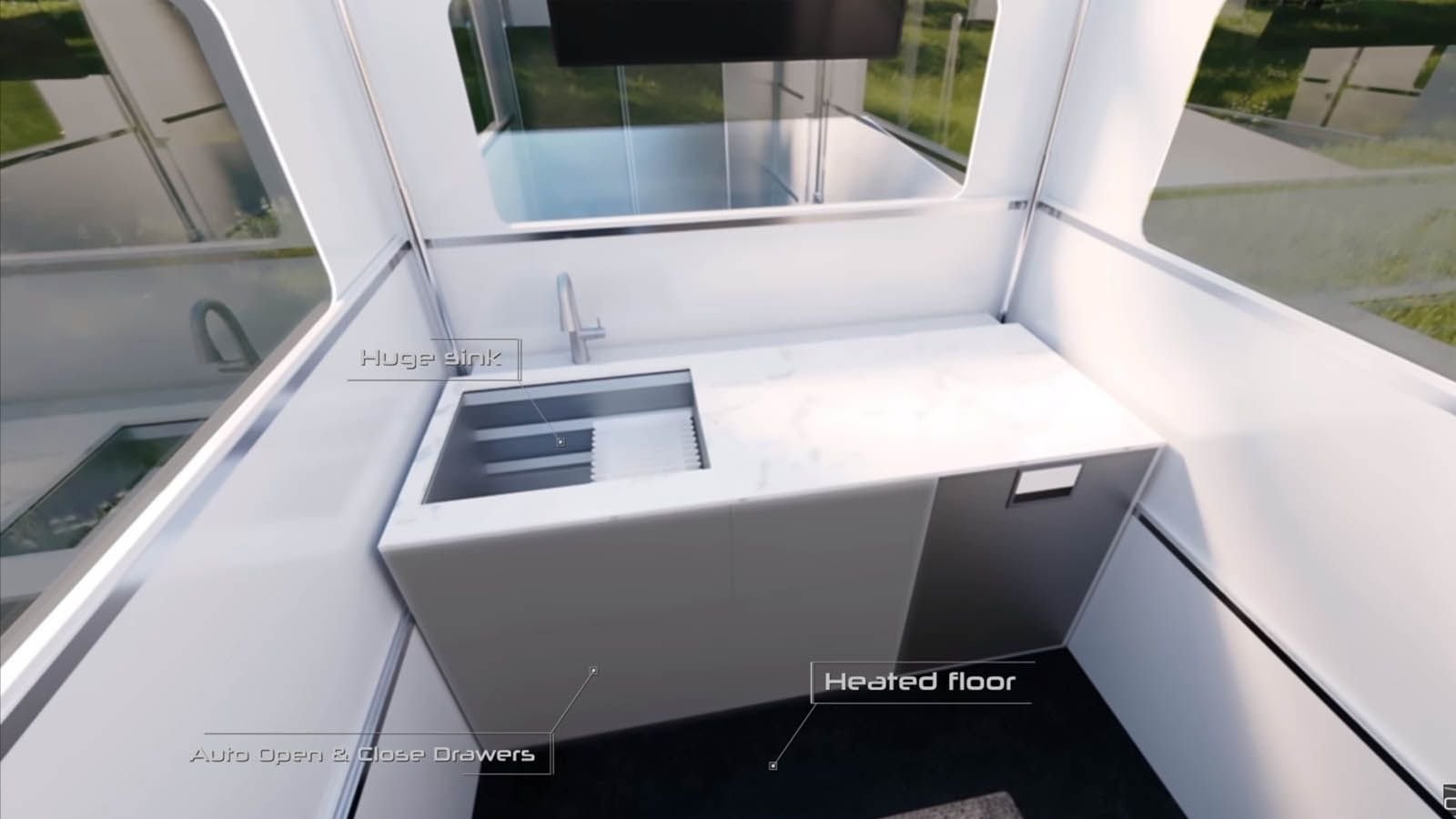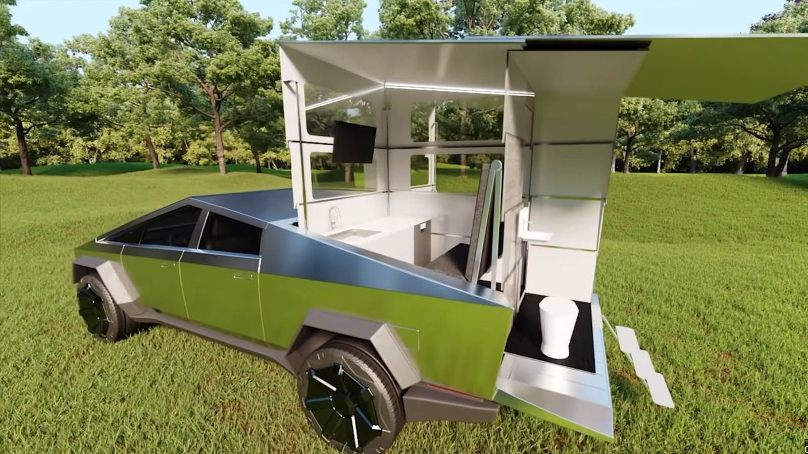 The CyberLandr addition features a bathroom, bedroom, and a kitchen, all in miniature scale, of course. And the video feature released by the company reveals a fascinating, modern design for the camper, making very efficient use of the limited space. This product has been very well-received by prospective Cybertruck owners.