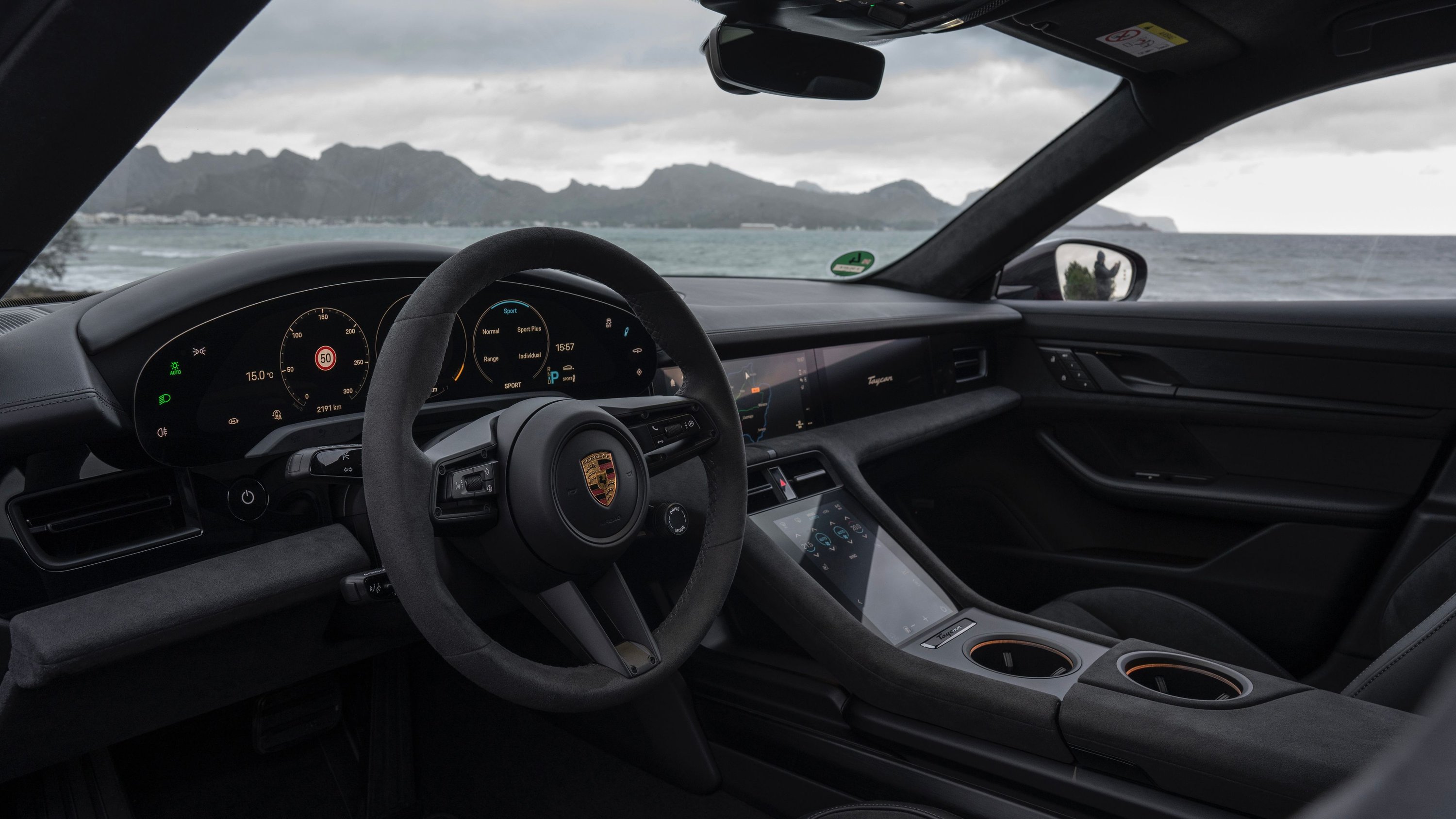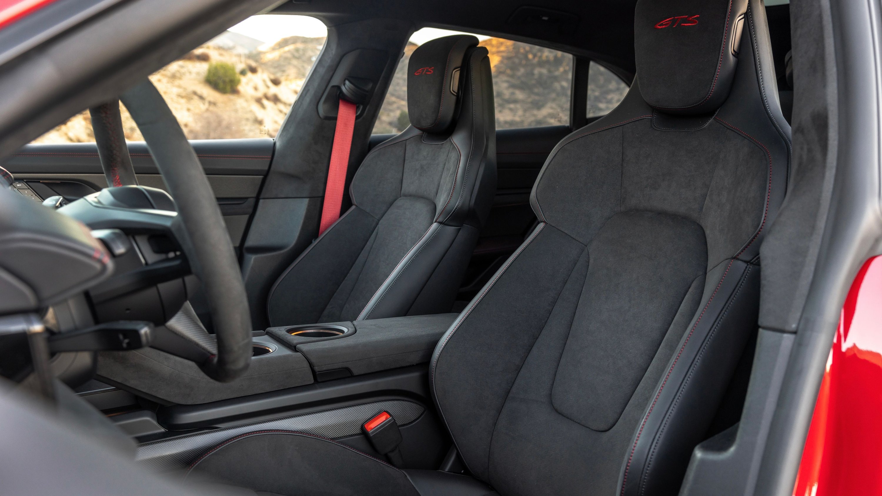 In addition to straight-line speed, the Taycan GTS family also features a host of suspension upgrades to make it go fast around corners, too. Those improvements include a unique calibration and tuning, as well as six-piston front and four-piston rear brakes, though buyers can also upgrade to ceramic and tungsten-carbide-coated units. Porsche Active Suspension Management (PASM), Porsche Torque Vectoring Plus, an adaptive air suspension, and the Sport Chrono Package are available as options.